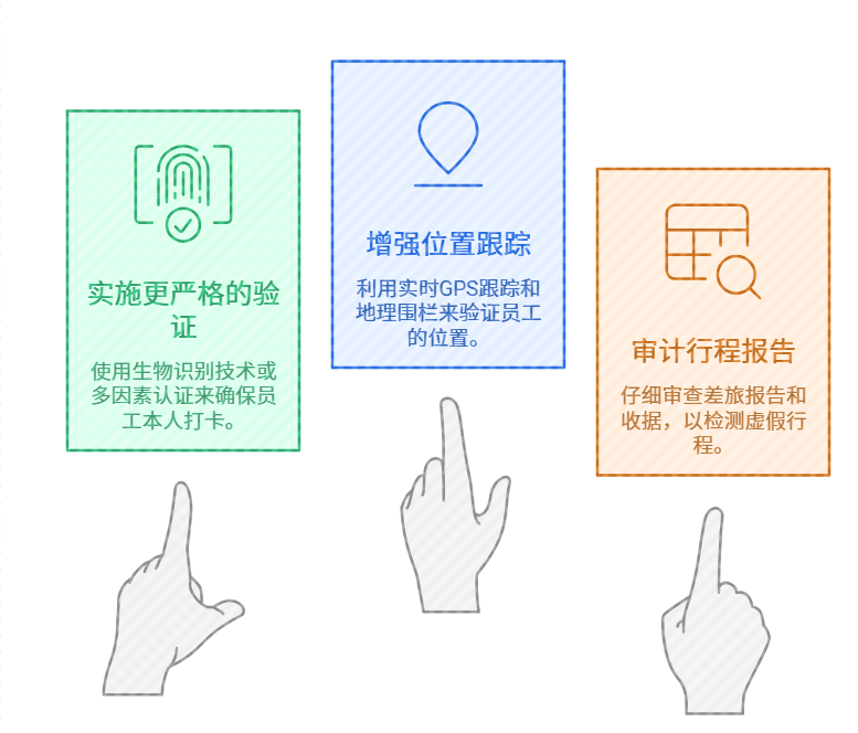 代打卡与虚假行程:由于缺乏有效的身份验证与轨迹印证,员工之间互相代打卡,甚至虚报差旅里程套取油费。