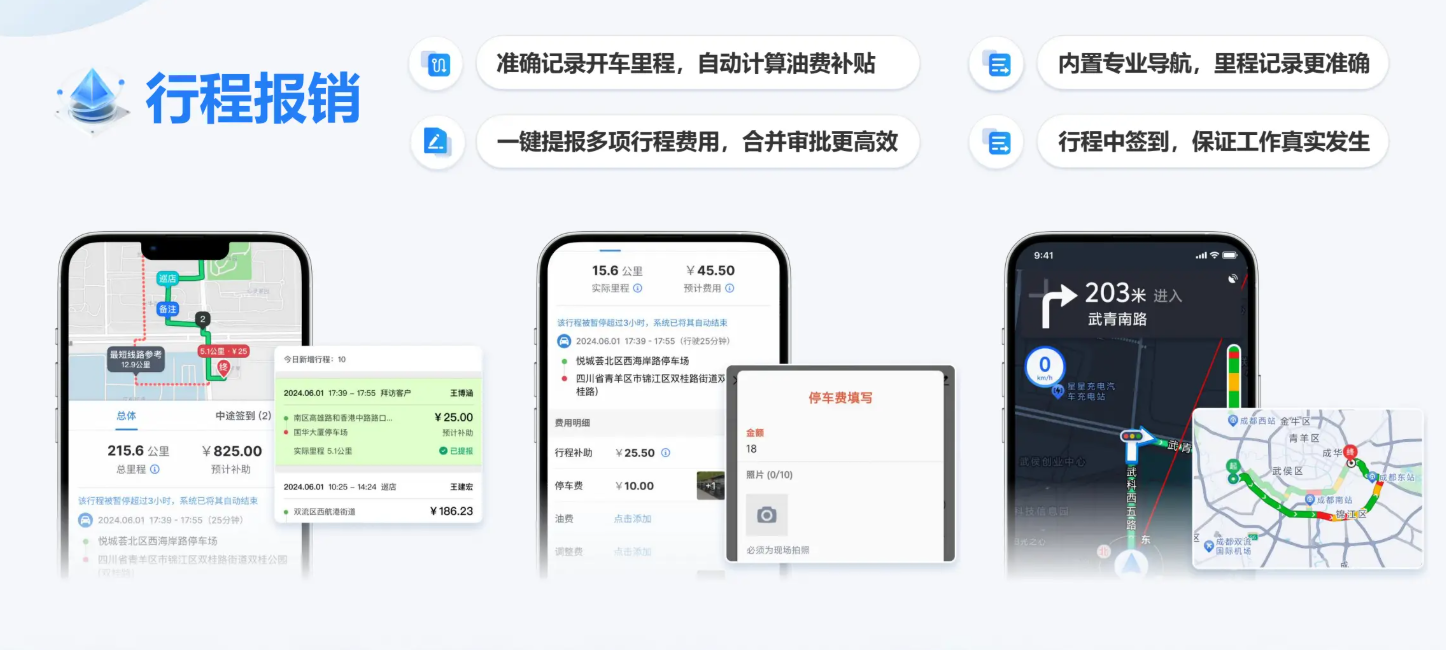 考勤管理不应只局限于“出勤”,对于外勤占比大的企业,私车公用产生的油费和里程补贴往往是最大的隐形成本。如果考勤系统与费控脱节,财务审核将面临巨大的核算工作量。