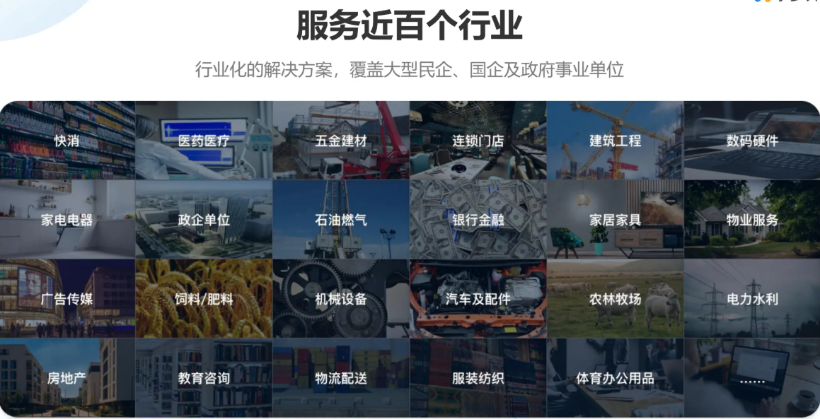 行业全覆盖:服务近百个行业,涵盖快消、医药、建材、连锁门店等,能够为不同规模的企业量身定制专属方案。