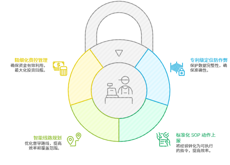 在巡店管理中,真实性是所有决策的基础。小步外勤拥有 30 余项国家专利,其“自然轨迹引擎”为真实性提供了多重保障: