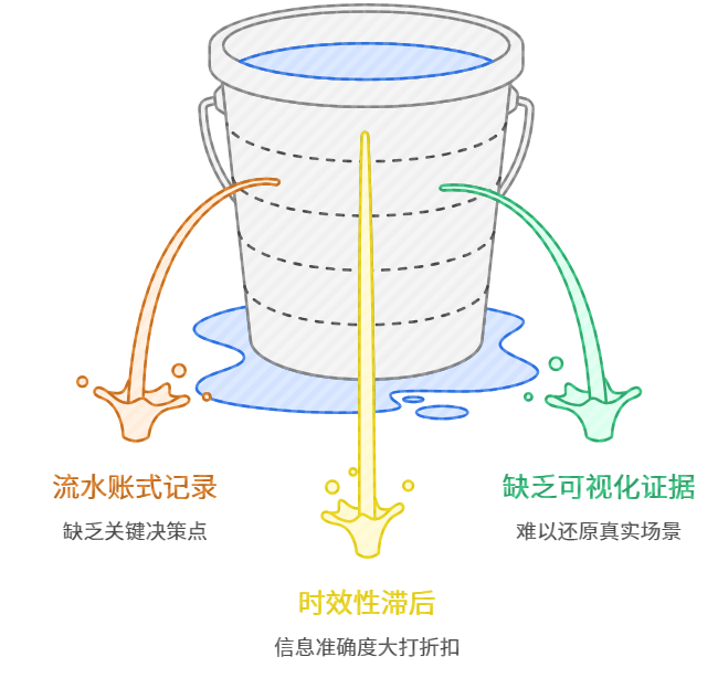 缺乏可视化证据:文字描述往往主观,缺乏现场照片支撑,管理者难以还原真实场景。