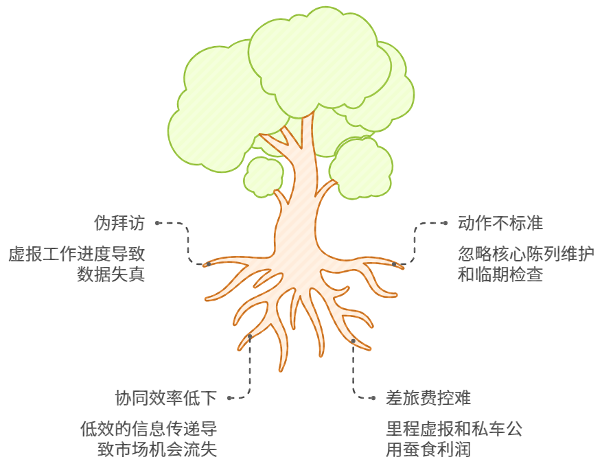动作不标准:进店后干什么?不同的业务员有不同的标准。有人只顾着推单,有人只顾着拍照,核心的陈列维护、临期检查往往被忽略。
