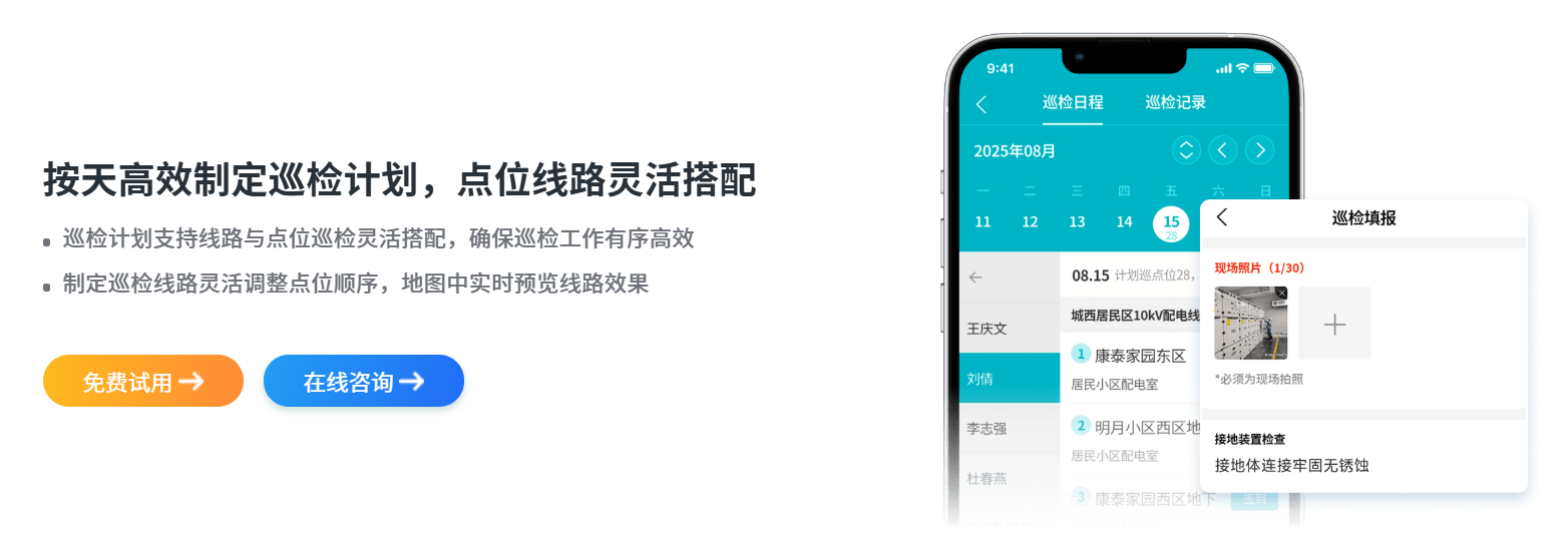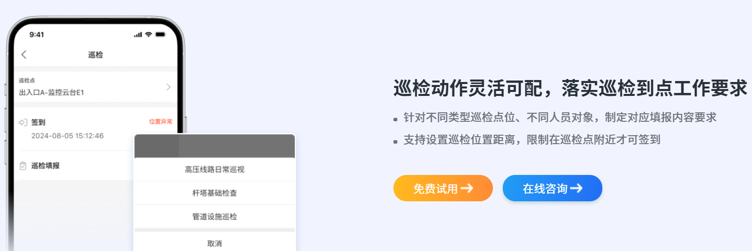 企业可以根据不同的点位预设不同的检查项。巡检员到达指定点位后,手机端会自动弹出任务列表:检查灭火器压力、检查线路是否裸露、检查陈列是否整齐等。这种结构化的表单确保了巡检的深度,防止了“走过场”。