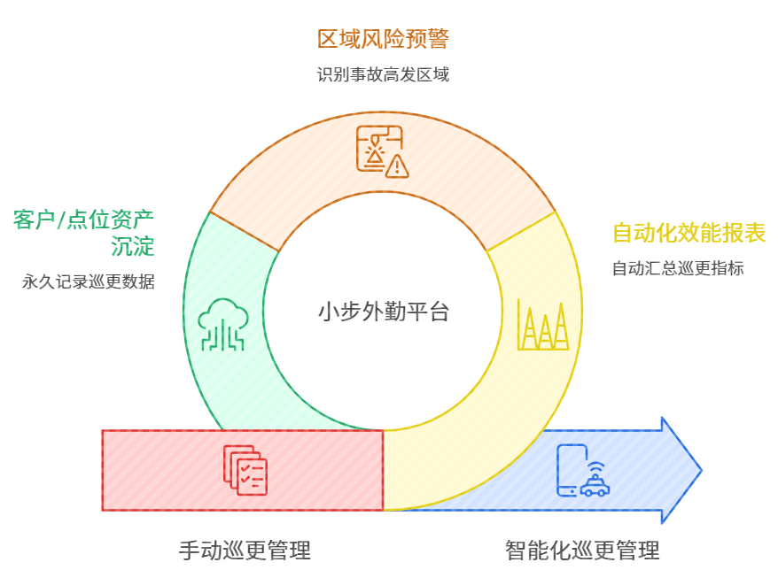 小步外勤的出现,将传统的“被动监控”转变为“主动管理”。它不仅记录位置,更通过一套完整的数字化工作流,确保巡检人员在正确的时间、出现在正确的地点,并按照预设的标准完成巡检动作。