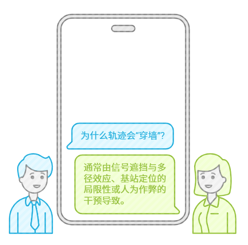 基站定位的局限性:当 GPS 信号弱时,手机会切换到基站定位。由于基站覆盖范围大,定位精度较差,往往会产生跳跃式的轨迹点。