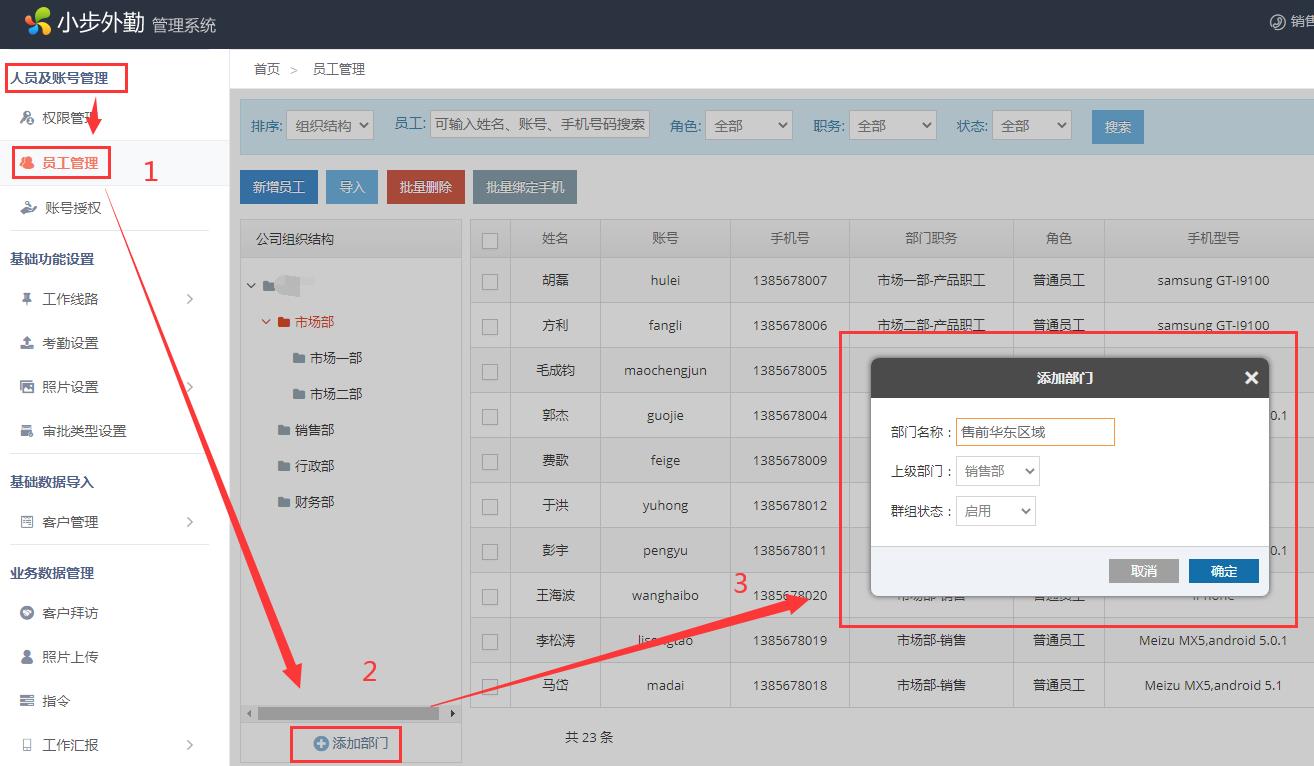 用小步外勤创建一个完善的公司部门组织结构,打破部门界限,内部随时交流沟通,实现最大限度的资源共享。