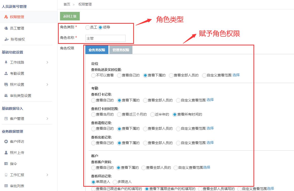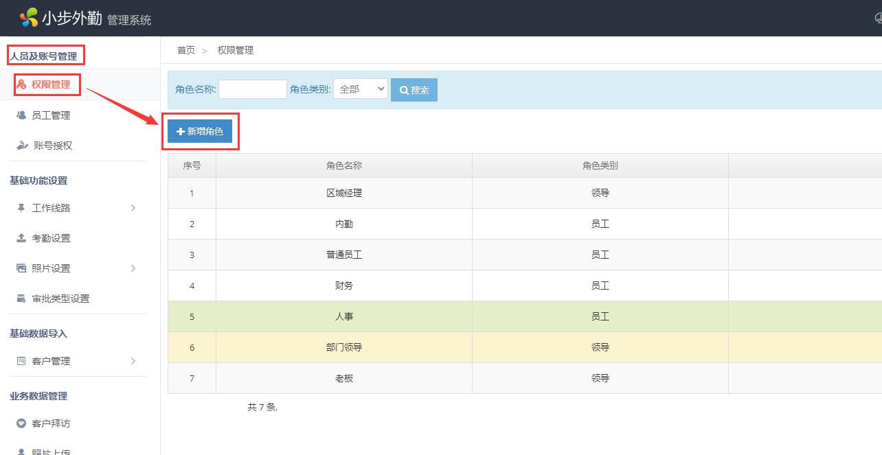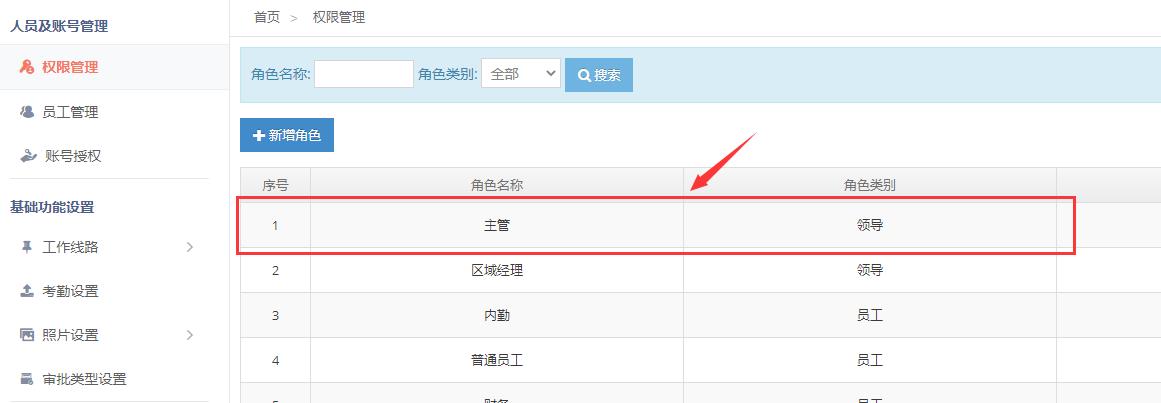 角色类型如:普通员工、内勤、财务、人事等等角色。
