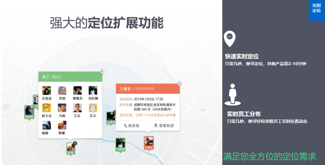 力天建筑工程公司运用小步外勤管理软件中的实时定位功能,能够利用强大的定位扩展功能,只需几秒就可以对员工进行实时定位,轻松掌握到员工的实时工作位置,有效确保监理人员真实在岗按要求到达各施工项目进行视察巡逻。