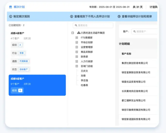 最短拜访路线规划:系统基于算法自动为督导规划当天的最优路径,避免重叠与返航。据标杆客户实测,引入后督导人均日拜访量通常可提升 20% 以上。