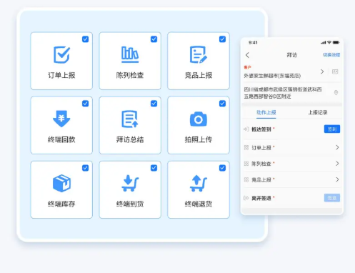 动作流引导:督导进店后,系统自动弹出预设模板,如“陈列检查、价格监测、竞品上报、店员访谈”。