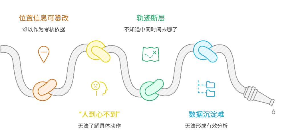 很多企业还在依靠微信位置分享或钉钉普通打卡来管理销售人员,但在复杂的销售环境中,这些工具往往显得“力不从心”: