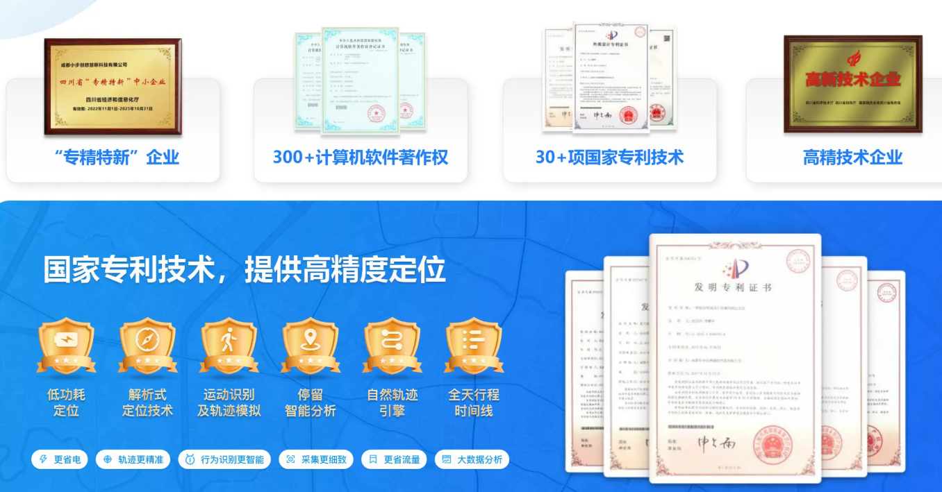 巡店管理对定位精度、省电、省流量有极高要求。小步外勤拥有12年深耕经验,拥有30多项国家专利和300多项软件著作权。作为国家级“专精特新”企业,其底层技术能保证在隧道、高楼等复杂环境下轨迹依旧平滑精准。