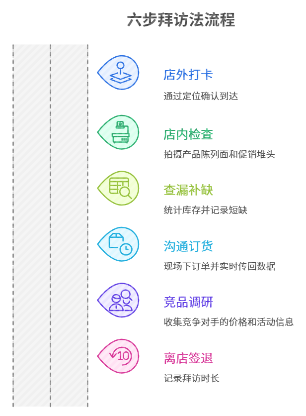 通过小步外勤,企业可以将拜访动作拆解为可量化的步骤。例如: