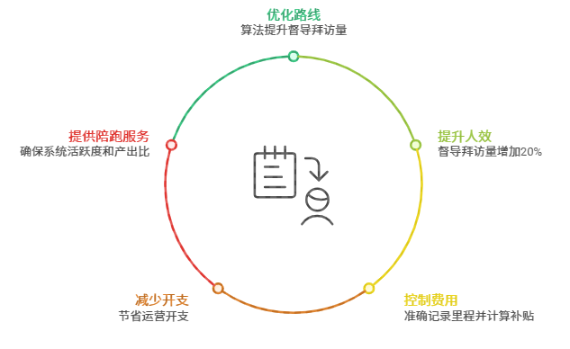 灵活调整:面对突发情况,督导可以实时调整计划,系统会动态优化后续路径,最大化减少非必要的路途耗时。