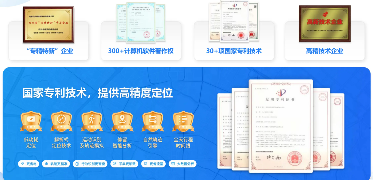 作为连续三年的中国移动DICT大奖获得者,小步外勤在定位技术上拥有超过30项国家专利。