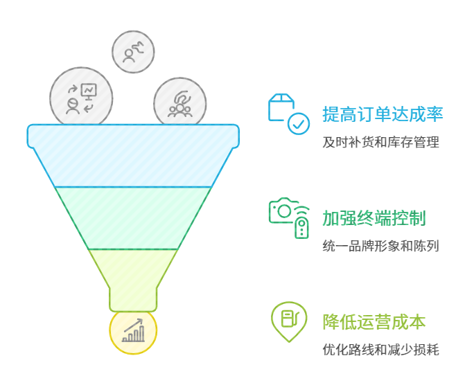 更高的订单达成率:因为跑得勤、看得到库存,补货更及时。