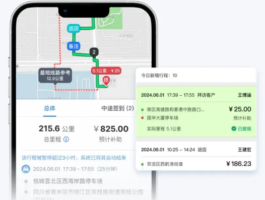 巡店不只是检查,更是为了解决问题。发现异常后,系统能即刻生成“整改工单”下发至门店。同时,对于开车巡店的企业,小步外勤的开车报销版能自动计算真实里程和油补,平均能为企业节省 15%-30% 的不合理费用,实现真正的“商无忧”。