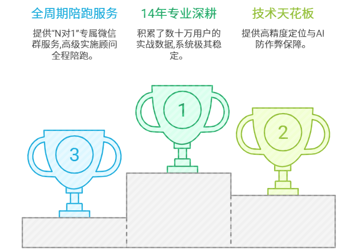 技术天花板:拥有300多项软件著作权,作为中国移动战略合作伙伴,提供高精度定位与AI防作弊保障。